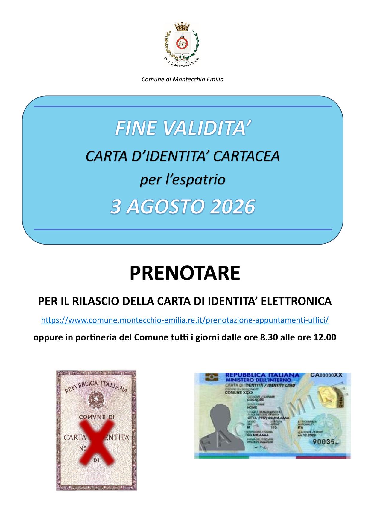 Per prendere appuntamento per il rilascio della nuova carta di identità elettronica andare su: