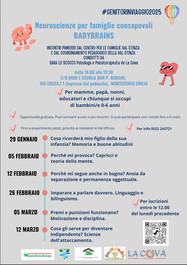 Nuova edizione dell'iniziativa "Neuroscienze per famiglie consapevoli" promossa dal Centro per le Famiglie Val d'Enza e dal Coordinamento Pedagogico Val d'Enza