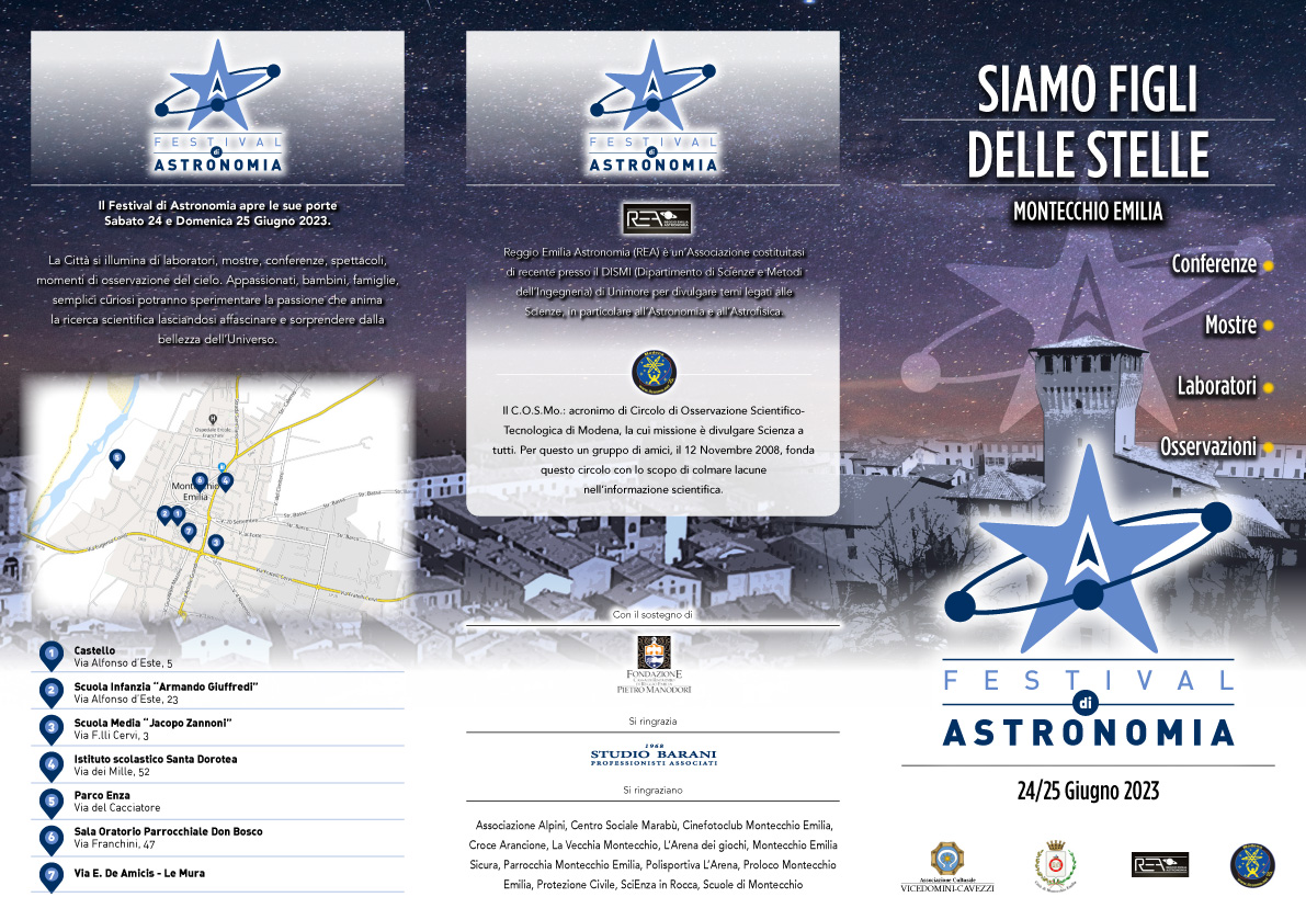 L'iniziativa è a cura dell'Associazione Vicedomini Cavezzi, con il patrocinio del Comune di Montecchio Emilia, e realizzata in collaborazione con l'Associazione REA (Reggio Emilia Astronomia) e C.O.S.Mo. (Circolo di osservazione Scientifico-Tecnologica di Modena). Con il sostegno di Fondazione "Pietro Manodori" di Reggio Emilia.